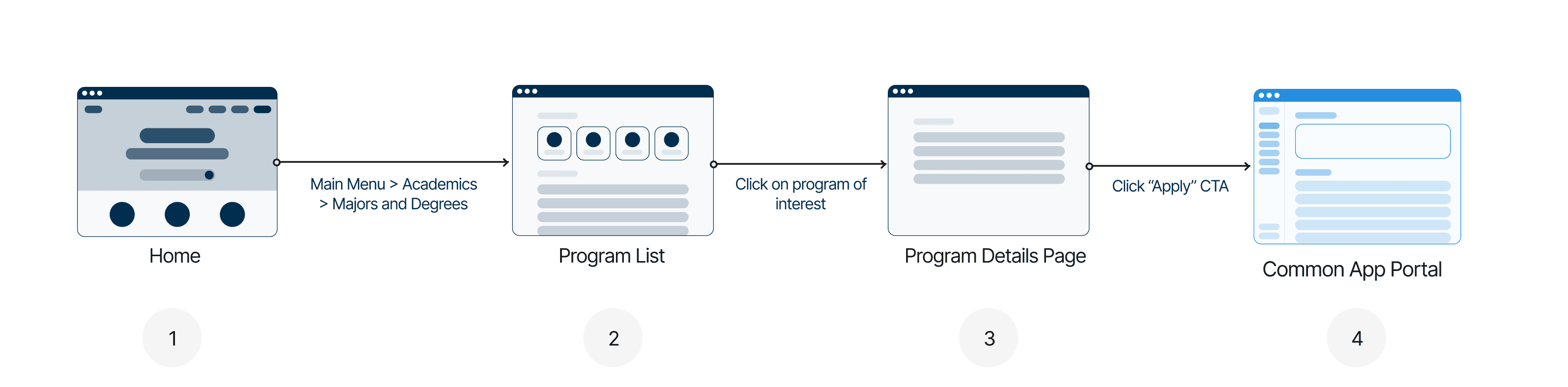 Define primary/secondary content for each page type (program, admissions, faculty, research) so visual hierarchy supports decision-making.