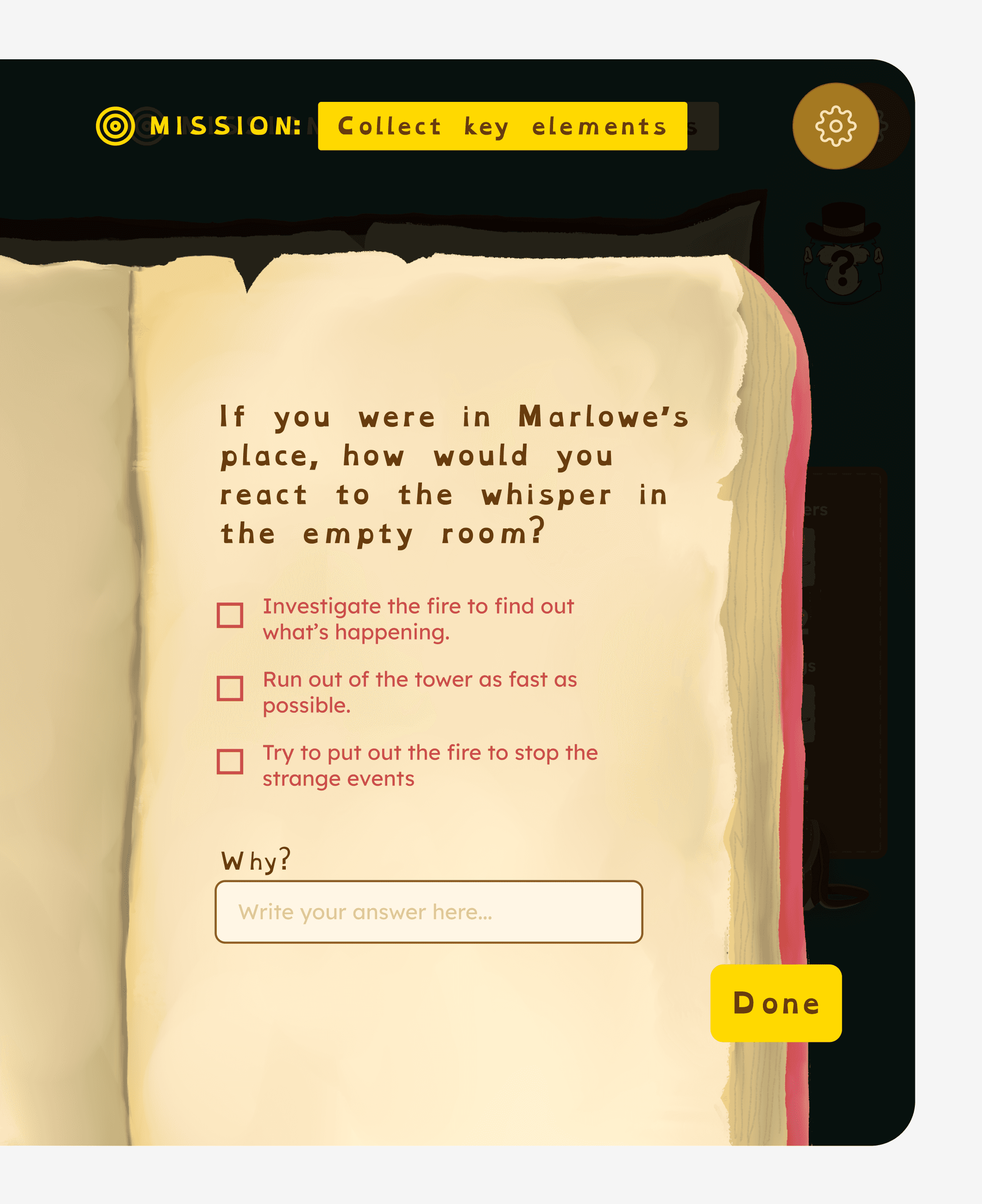 The workshops made it clear that simply digitizing classroom tools wasn’t enough. We reimagined a hybrid concept: a game that blends playful agency with purposeful reading strategies.