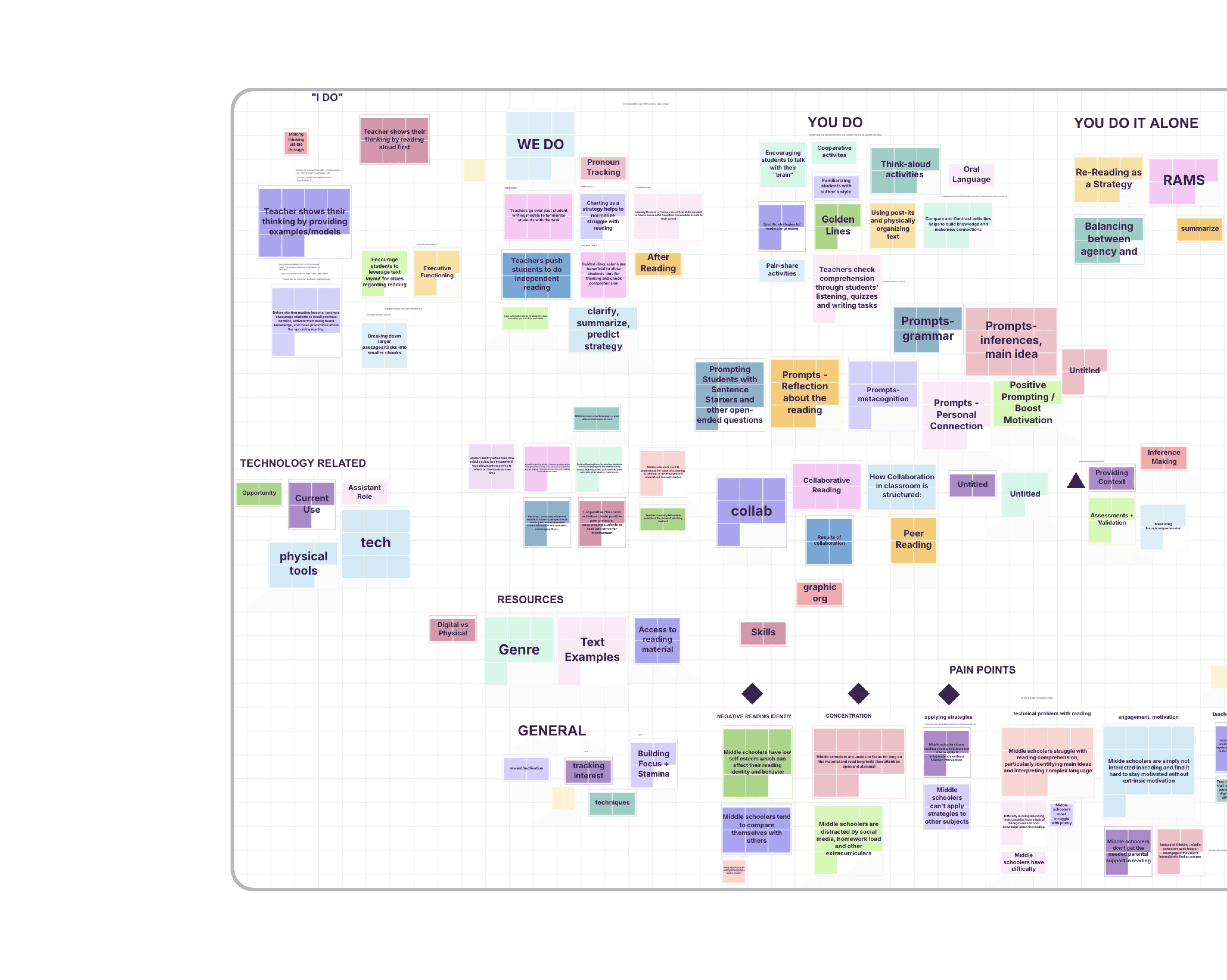 Our brainstorming and ideation sessions generated two distinct approaches to help middle schoolers build independent reading comprehension skills.