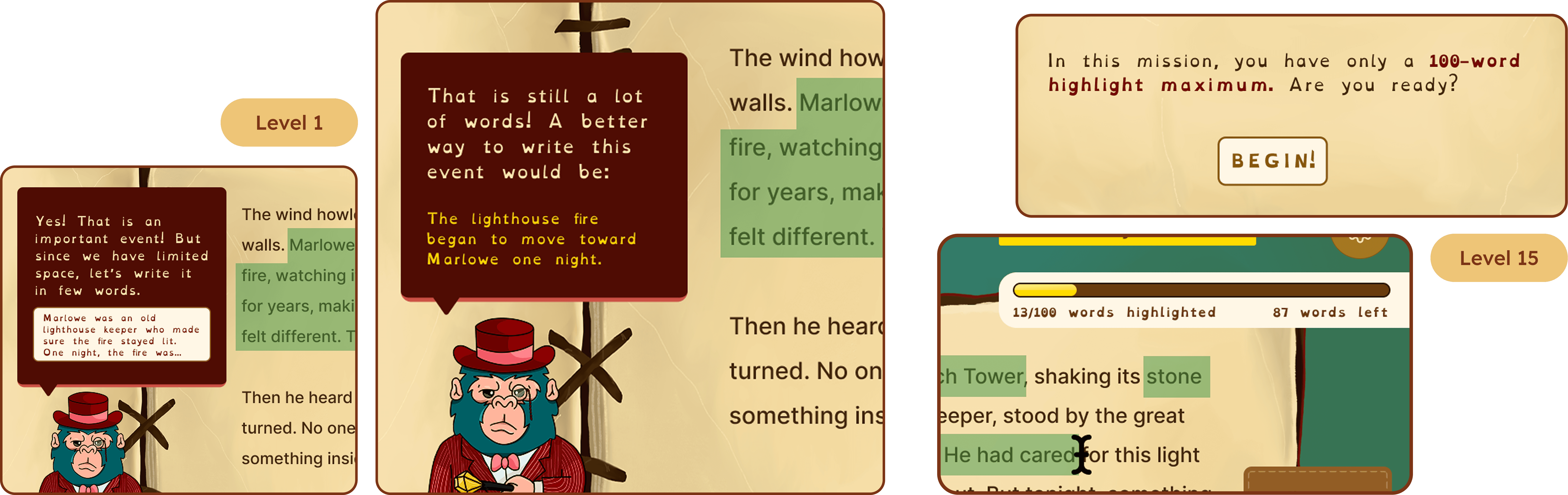 Early testing showed excessive highlighting. Students marked entire paragraphs or only character names