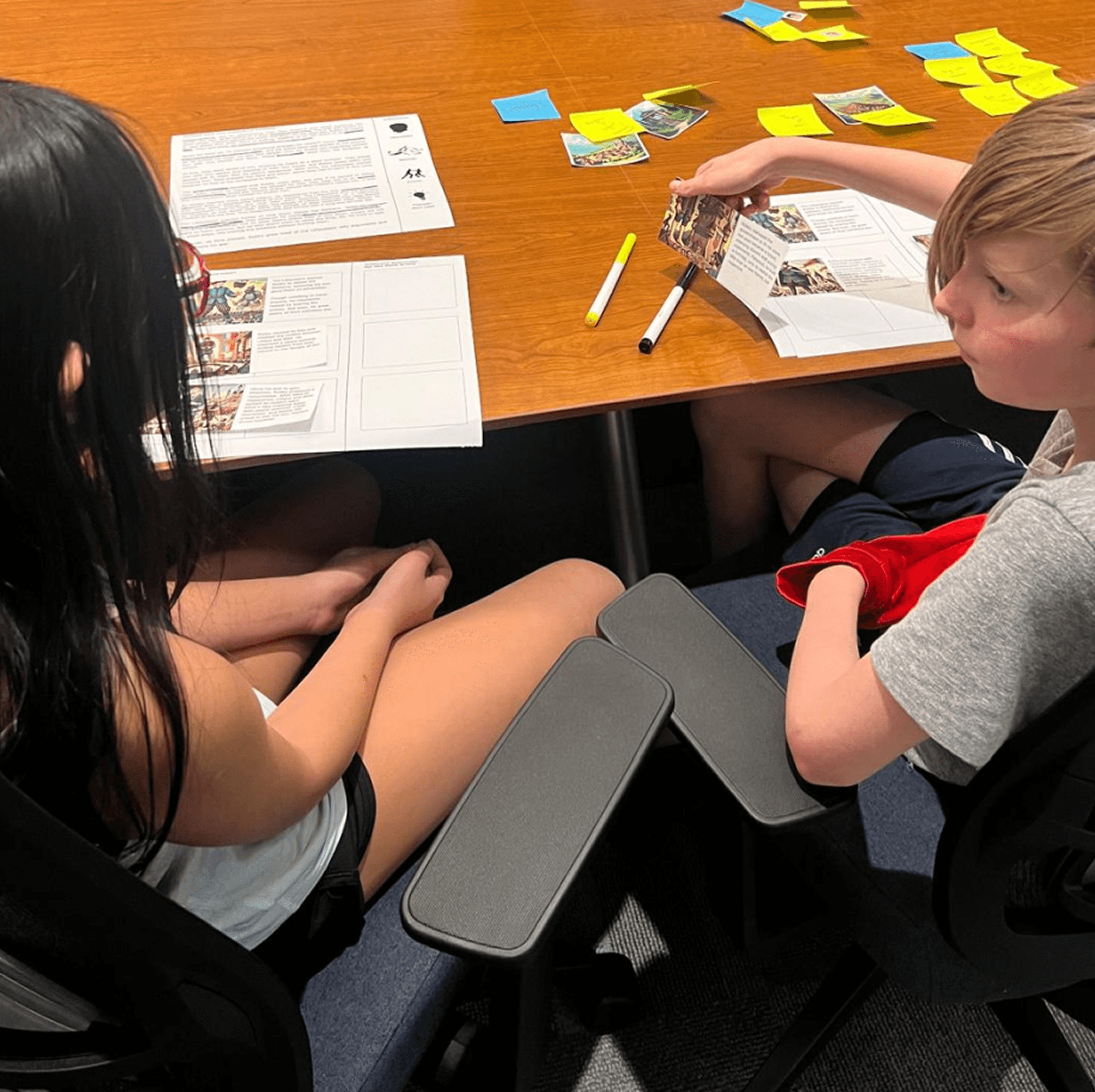 Students chunk stories, build comics, and make predictions. Creative play replaces
