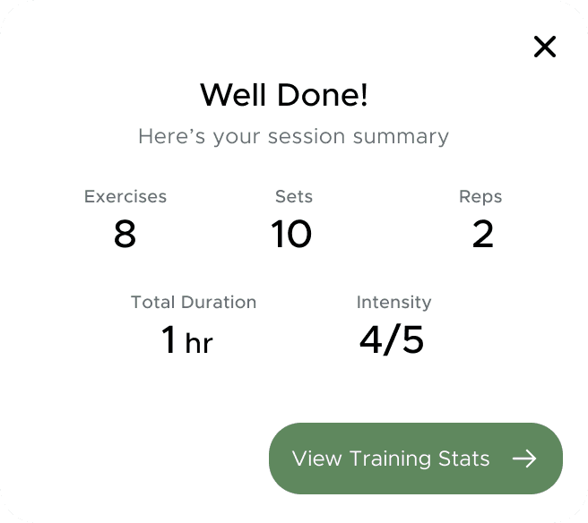 Modular exercise cards support flexible sessions across strength, mobility, and recovery