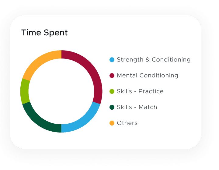 Color-coding by training category (batting, bowling, fielding) creates visual variety without text overload
