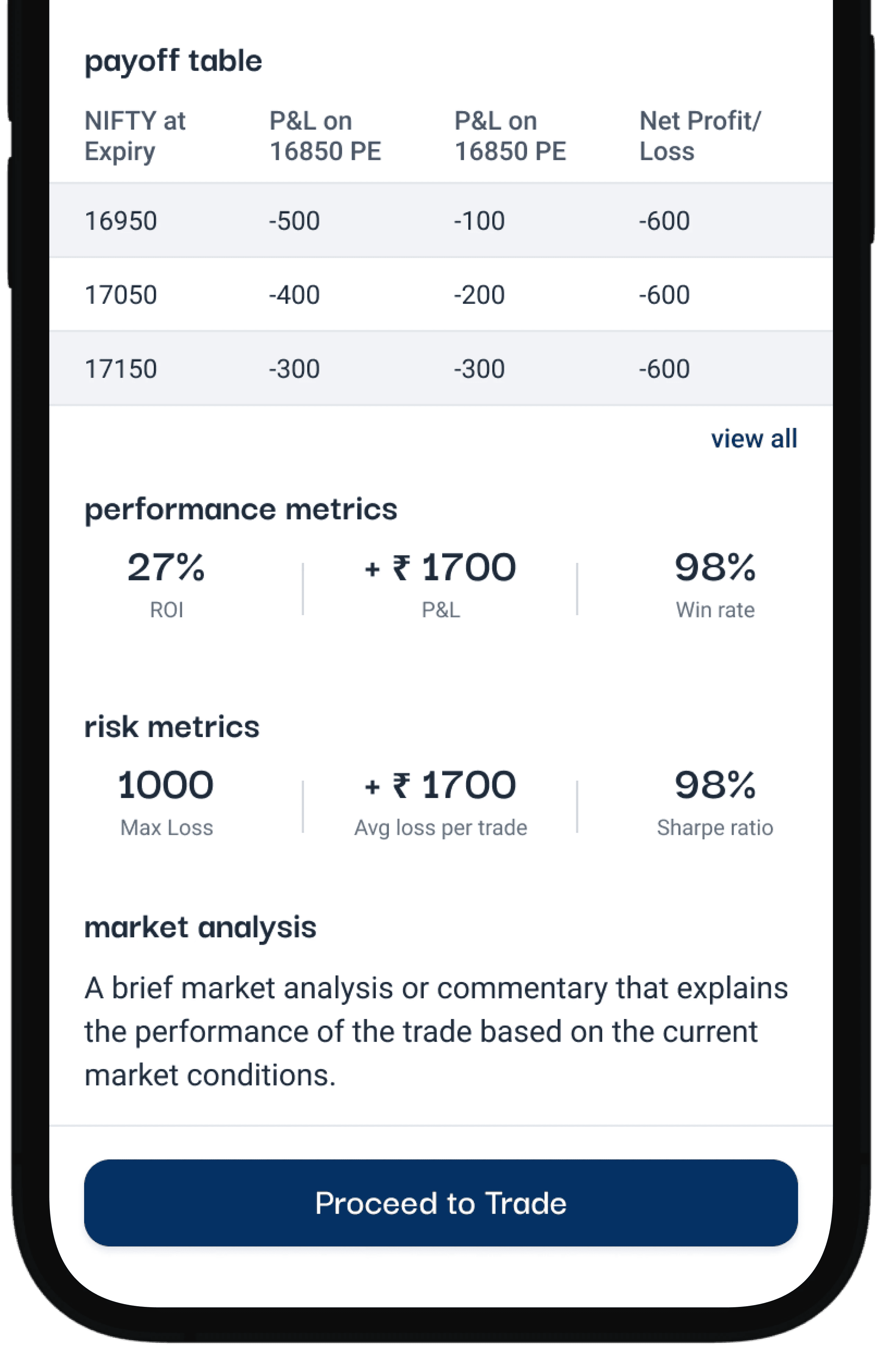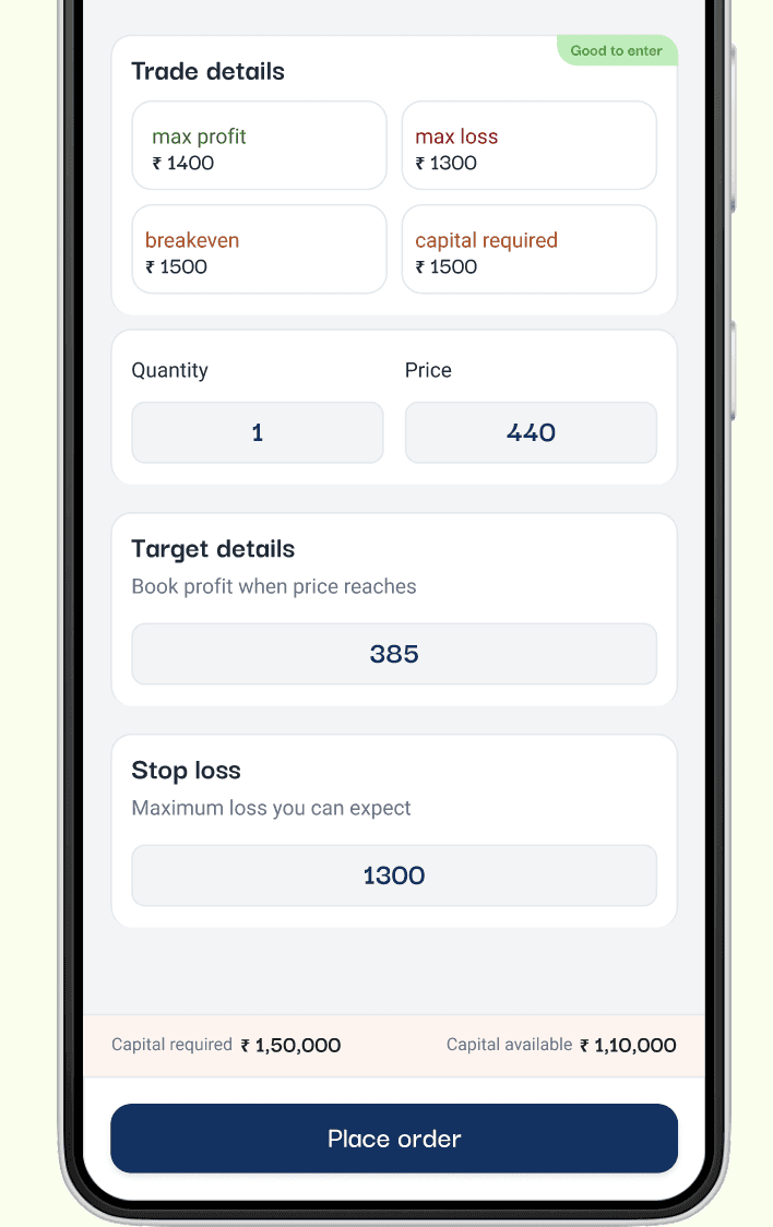 A unified decision flow that combines strategy, risk, targets, and payoff scenarios, designed to help users validate high-stakes trades before execution.