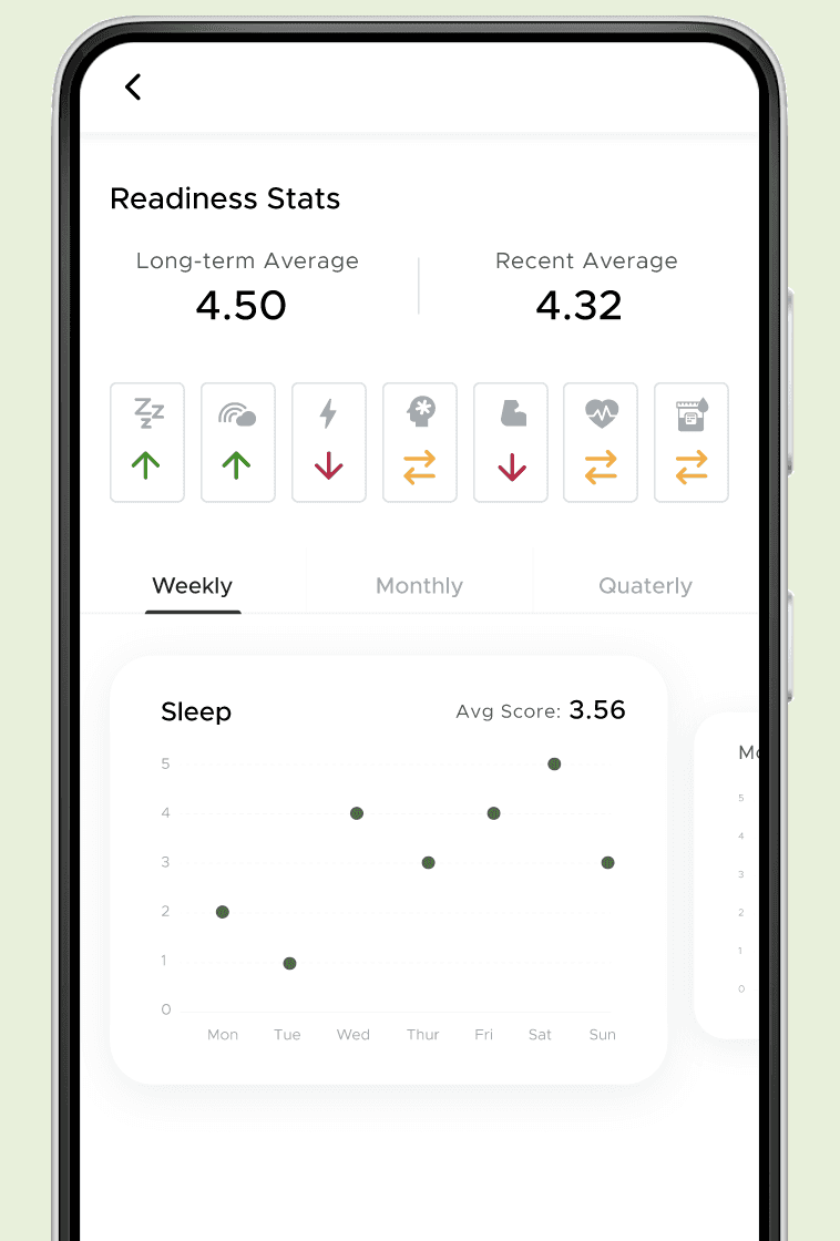 Short, slider-based check-in captures sleep, mood, energy, and soreness without form fatigue