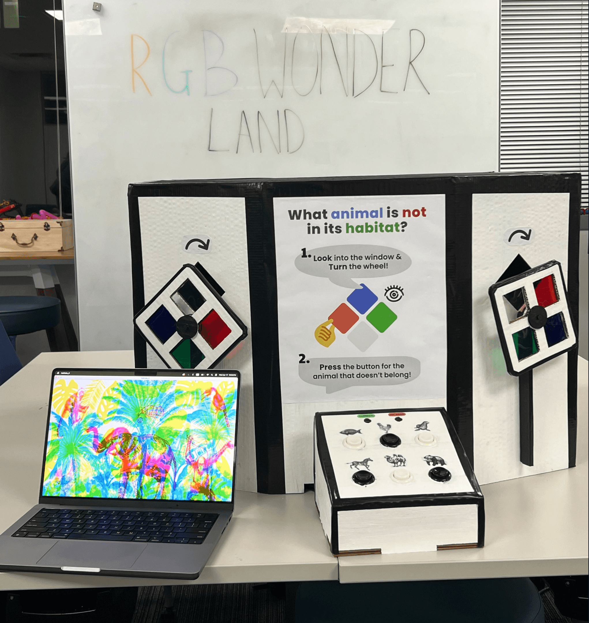 So, we designed the RGB Wonder Wheel for the Children's Museum of Atlanta to transform abstract concepts into tangible discovery. Using colored filters, animated animals, and an "odd one out" game, children manipulate red, green, and blue light to reveal hidden layers in images. Through play, they build intuitive understanding of how colors combine and interact.
