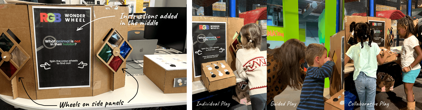 The third iteration brought back the two-wheel structure with simplified instructions and an integrated button box which successfully enabled shared exploration. Children could now play alongside each other while viewing through different filters.